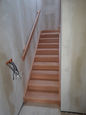 "U“ schodiště mezi stěny s podstupnicemi, ½ lomené, barevně upravené mořením, výplně zábradlí nerez, 2,5 metrů zábradlí. Příčka dodělaná po montáži schodiště